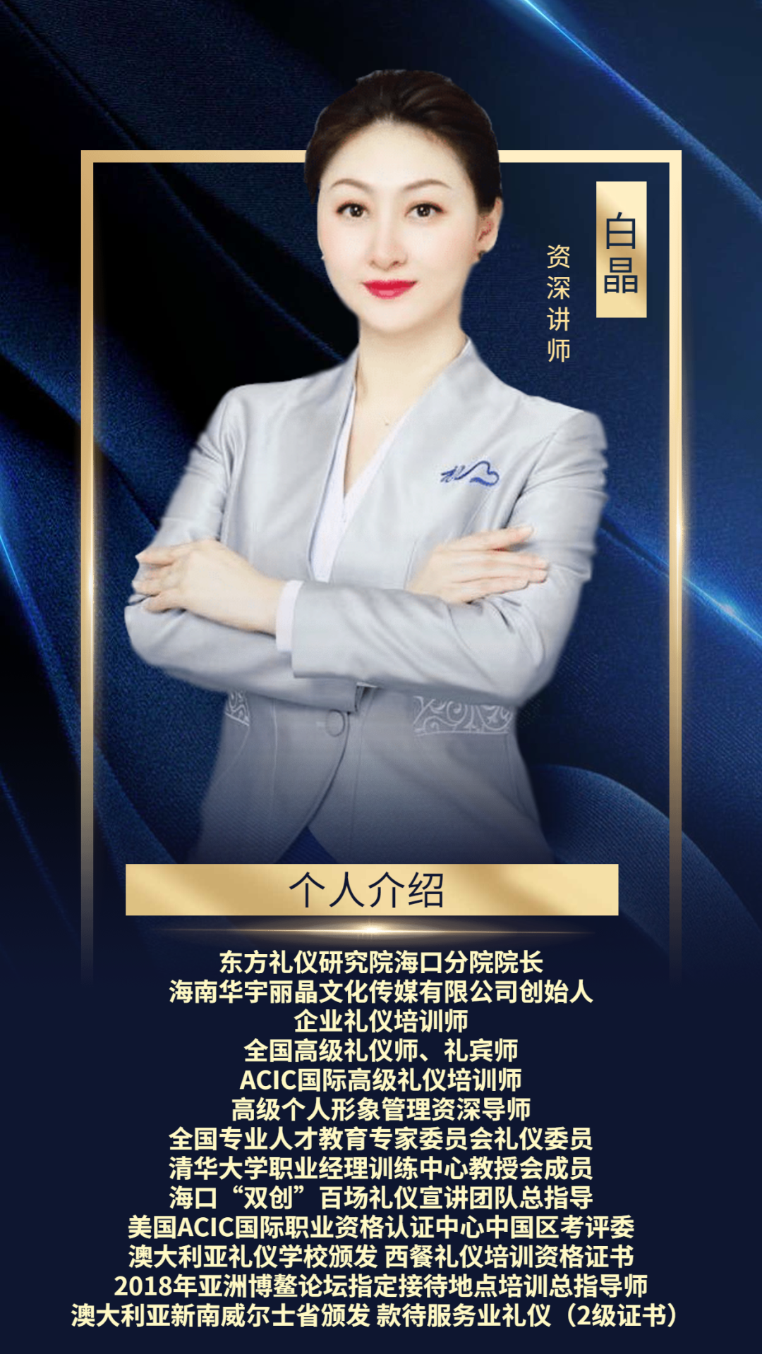 华宇丽晶ACIC《国际注册高级礼仪培训师》双证班震撼来袭!