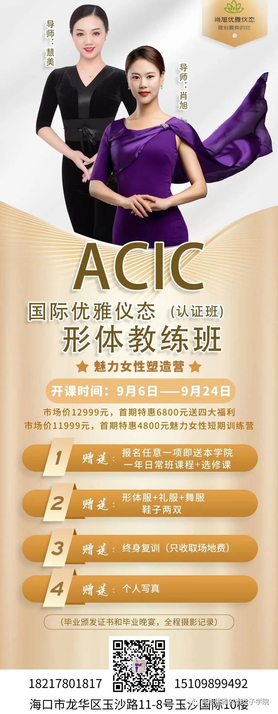 肖旭女子学院 | ACIC国际注册优雅仪态培训师认证班9月6日海口开课
